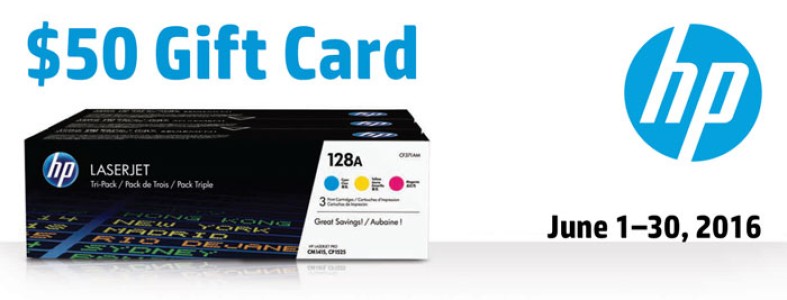 Buy $300 of Original HP Toner and receive a $50 Shell Gift Card or The Cheesecake Factory® Gift Card.